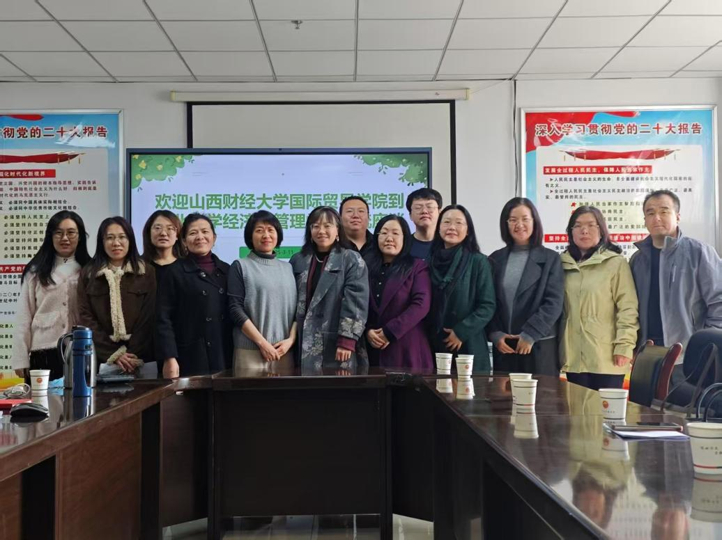 为促进校际间专业交流与合作,汲取先进教育理念与教学经验,近日,山西财经大学国际贸易学院代表团来到中北大学经济与管理学院,与国际经济与贸易专业教师开展了一场意义非凡的交流座谈会。我院经济系主任周娟美带领国际经济与贸易专业骨干教师热情接待,双方围绕教育教学、专业设置、师资培养等多方面展开深入探讨。