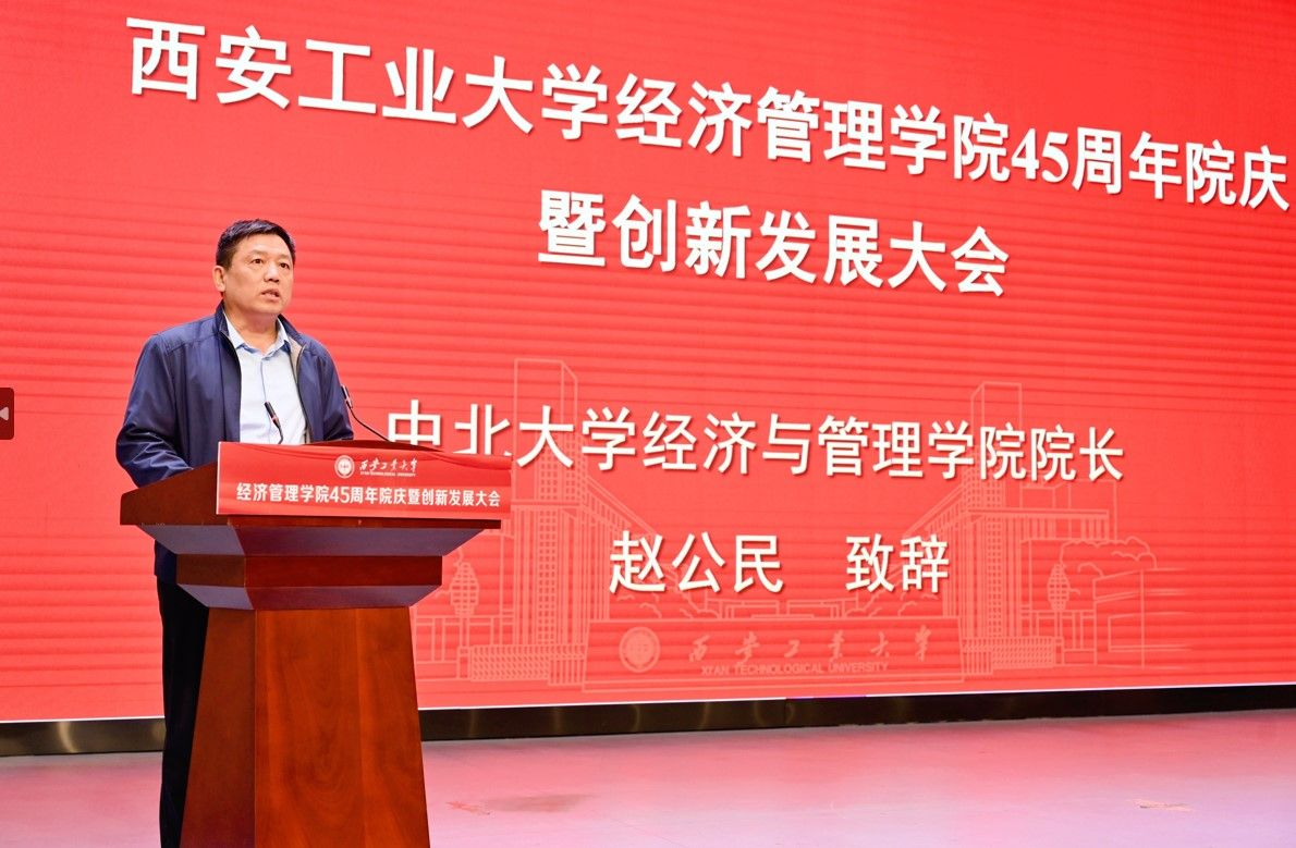 赵公民院长应邀出席西安工业大学经济管理学院45周年院庆暨创新发展大会并致辞,“兵工七子”经管学院与陕西高校经管学院院长及代表齐聚一堂,围绕人工智能背景下经管学科发展、特色学科建设、数智时代人才培养等议题展开深入交流,未来,各院校将进一步深化合作,在人才培养、科学研究、社会服务等领域开展多层次协同创新,共同推动经管学科在新时代背景下的高质量发展。