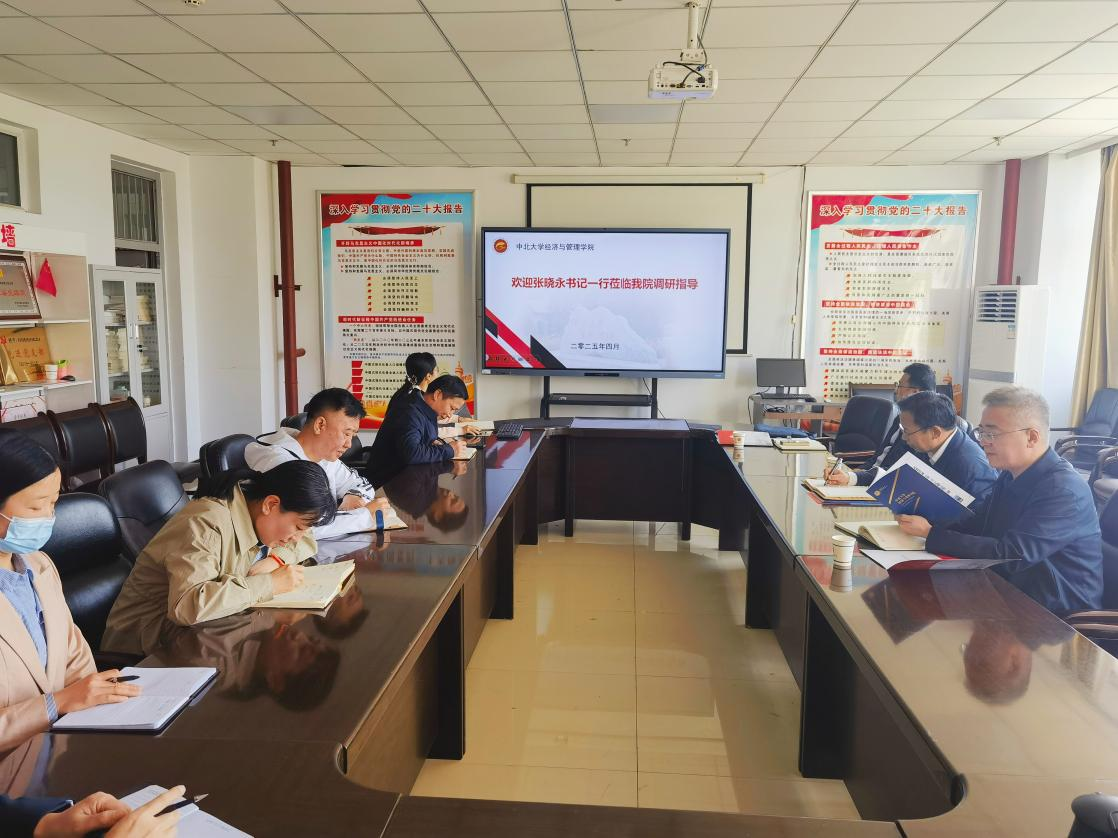 4月25日上午,校党委书记张晓永带队莅临我院调研指导工作,校党委副书记赵文军及办公室有关人员陪同。学院领导班子、科级干部参加调研座谈会。