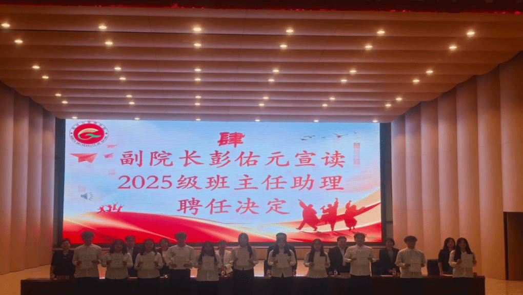 教师代表闫莹分享教育心得,从多维度给新生建议。在校生代表齐潇莹谈大学生活收获,鼓励新生积极探索。本科新生代表荀相铭致谢学院,表达成长决心。随后,副院长彭佑元、张克勇分别宣读 2025 级班主任助理、研究生兼职辅导员聘任决定,并为他们颁发聘书。
