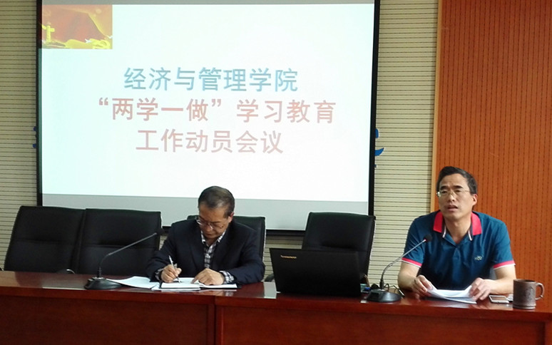 会上,学院党委书记石薛桥做了重要讲话,强调指出“两学一做”学习教育是继党的群众路线教育实践活动、“三严三实”专题教育之后,中央加强思想政治建设、推动从严治党向基层延伸的一项重大部署,也是党中央向全党发出的政治号令,我们要切实把思想和行动高度统一到习近平总书记重要指示精神上来、统一到中央和省委、校党委的决策部署上来、统一到全面从严治党要求上来,把学习教育作为重大政治责任和今年学院党建工作的重点任务,坚持高标准、严要求,科学谋划,精心组织,确保取得实实在在的成效。