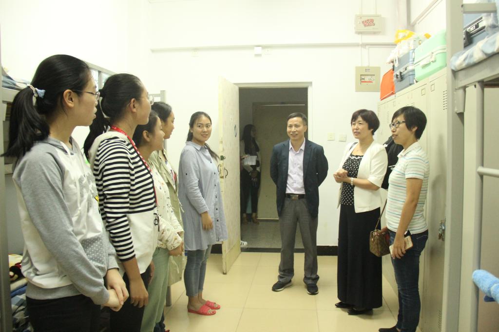 领导、老师们深入每一间宿舍,详细了解了各位新生的生源地、到校方式及初来学校的适应情况,对来自不同省份尤其是少数民族的同学给予生活上的建议,并希望同学们团结互助,建立良好的宿舍关系,共同克服气候、饮食上的不适应情况。走访中,领导、老师们仔细察看了新生宿舍环境和安全卫生状况,并提醒大家提高安全意识和自我保护意识,注意防骗、防盗,遇到问题多与班主任、辅导员沟通交流。在与新生交谈中,我院领导、老师还为新生介绍了对应专业的优势及就业前景,鼓励同学们勤奋学习,将来成为出色的经管人才!