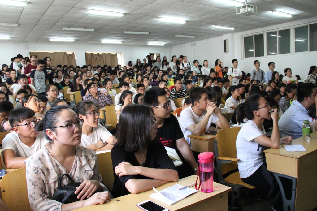 讲座现场座无虚席、过道和走廊都站满了赶来聆听讲座的学生。柴小青教授首先热情问候了在场师生,随后以“法商管理理论构建的现实需求及逻辑基础”为主题开展演讲。他围绕法商管理理论提出的背景、具体概念、基本观点以及法商管理的发展应用等四个问题进行深入,着重强调法律对经济管理工作的重要意义。他还通过分析大量案例来说明法商管理的研究重点、应用实践以及法商管理人才培养等课题研究的方向,拓宽了同学们的视野。同时,柴教授还着重强调"树德"的重要性,告诫在场学生提高自己的道德修养,培养正确的人生观、价值观。