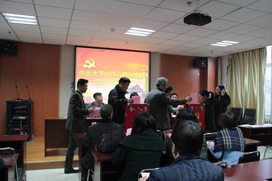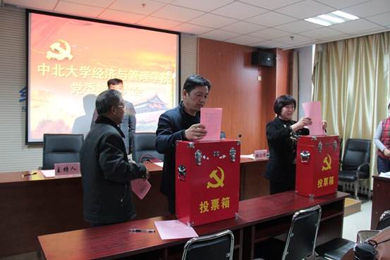 随后,院党委副书记屈有明同志作党费收缴、使用和管理情况的报告,大会听取并通过了《经济与管理学院党委委员会选举办法》。通过正式投票选举,产生中共中北大学经济与管理学院新一届党委委员9人:李爱霞、彭佑元、屈有明、申丹虹、苏贵影、王琳、王璐、赵公民、周娟美。