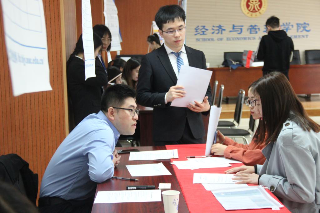 为了为搭建良好的就业信息交流平台,扩宽毕业生就业渠道,经济与管理学院于3月28日在逸夫楼301、302室举行春季双选会。学院高度重视此次双选会,院党委书记王琳来到现场查看相关事宜,就业服务中心和学生会各部门积极协助,为本次双选会保驾护航。