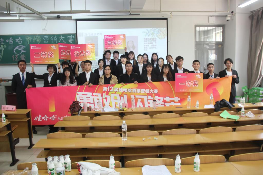 在精彩纷呈的初赛策划案大比拼与复赛实践操作后,共有五个队伍脱颖而出进入决赛环节。本次决赛共有答辩、营销展示与抖音短视频展示三部分。比赛开始,选手们就娃哈哈口味进行的调查问卷、宣传方式、服务、产品等各个方面进行激情昂扬的答辩。一场唇枪舌战的答辩过后,参赛选手给我们带来了令人拍案叫绝的创意营销展示。四小天鹅的芭蕾舞蹈,感人至深的父子情深,令人啼笑皆非的AD钙版“非诚勿扰”,各队伍用新奇独特的方式诠释他们对娃哈哈经营理念的理解。为缓解比赛的紧张气氛,我院生活部亦组织观众进行了比赛喝AD钙奶与盲听猜歌的友情活动。而“Wa 的感觉”团队依靠自己富有创意的想法与出色的营销手段夺得了本次比赛的冠军。中北赛区娃哈哈公司负责人张总总结评价本次比赛,她表示创办比赛的目的是希望帮助经管学生将理论运用于实践,并通过学生的创意想法、实践合作能力来提升自我,同时也希望学生能够总结经验教训,砥砺前行。
