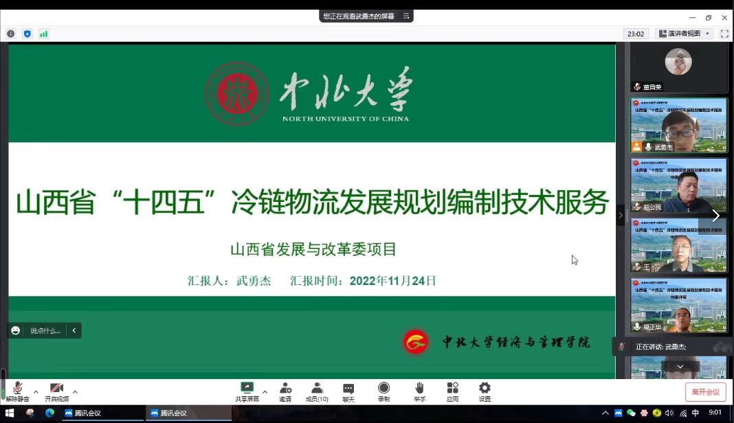 11月24日上午,我院采用线上方式,组织召开了“山西省’十四五’冷链物流发展规划”中期检查工作评审会,为山西省“十四五”冷链物流发展规划项目结题奠定了基础。会议由经济与管理学院院长赵公民教授主持,原山西省社科院副院长王凤鸿研究员、山西省社科院(省政府发展研究中心)梁正华研究员、山西财经大学朱丽萍教授、优先多歌供应链有限公司时晓钰副总裁、太原科技大学鲁锦涛教授出席了此次评审会,规划编制组教师和研究生参加了此次评审会。