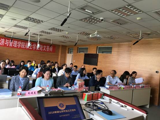 5月24日上午,在15号楼南楼逸夫楼301教室与410教室举行了经济与管理学院2018届硕士研究生毕业论文答辩工作,答辩分学硕和专硕两组,共21名学生参加答辩。
