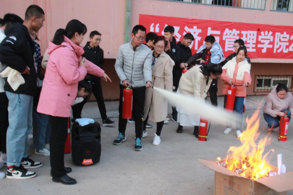 为了进一步加强经济与管理学院安全工作,增强大一新生消防安全意识,提高学生对火灾的应急扑救处置能力,11月19日下午4点10分,我院于西区足球场空地前方组织大一学生进行消防演练。我院教学科科长李爱霞和学院教师郭薇薇参与指导此次演练。