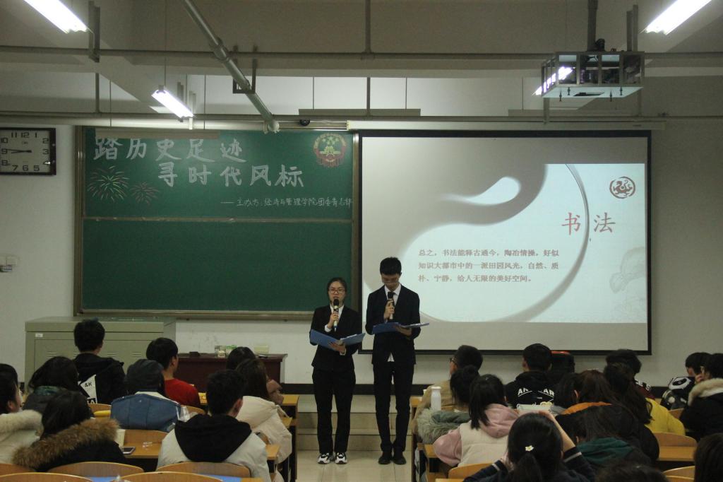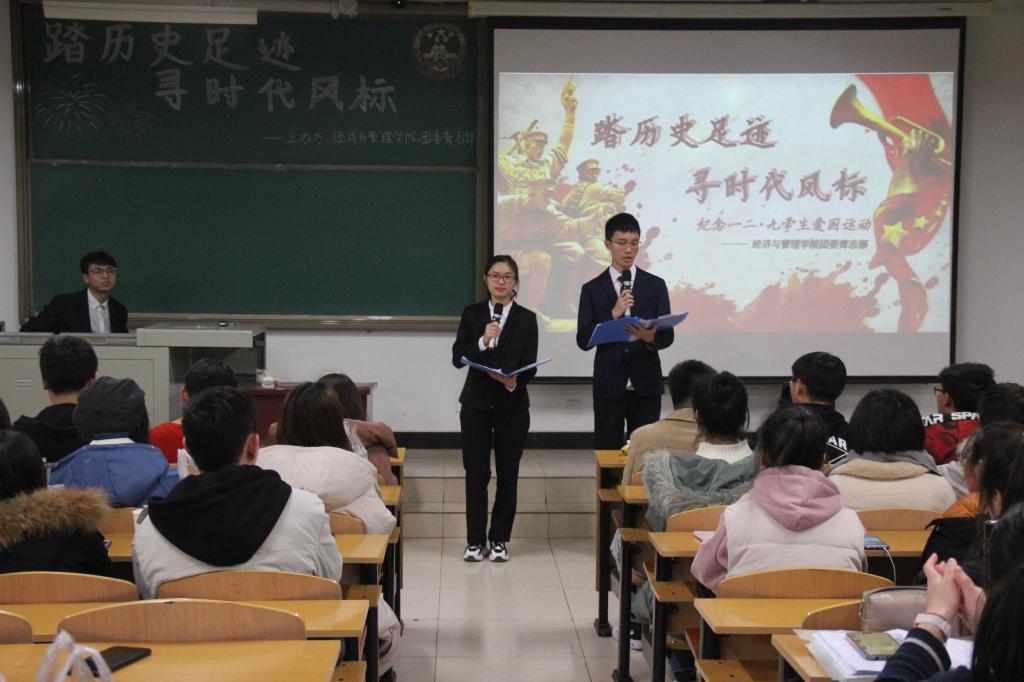 为了让同学们铭记历史,努力奋斗,经济与管理学院团委院青志部于2019年12月7日晚上七点半在15102H举行了“踏历史足迹,寻时代风标”主题晚会,此次晚会邀请学校青协主席团,各学院青志部部长,本院部分学生干部及大一学生参与。