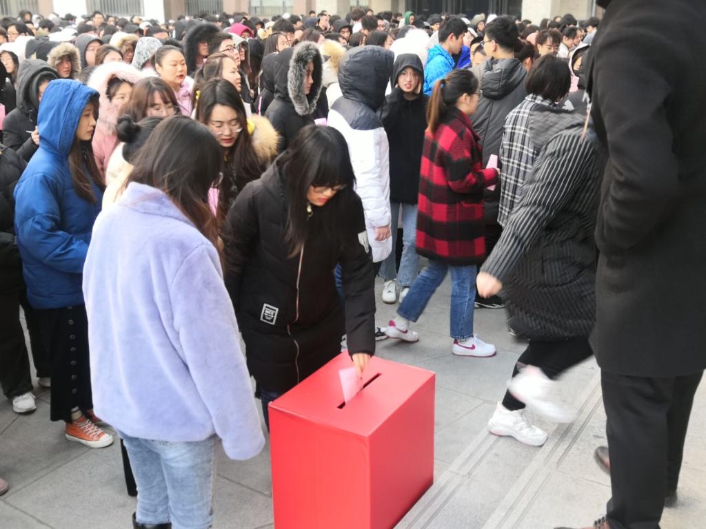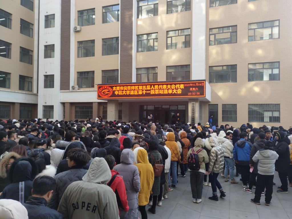 为认真做好太原市尖草坪区第五届人民代表大会代表补选工作,太原市尖草坪区第五届人民代表大会中北大学选区第11投票站于2020年1月4日上午十点半在逸夫楼前举办人大代表选举大会,补选区人大代表。经济与管理学院全体学生参与此次会议,院党委书记王琳、党委副书记屈有明来到现场指挥此次大会。
