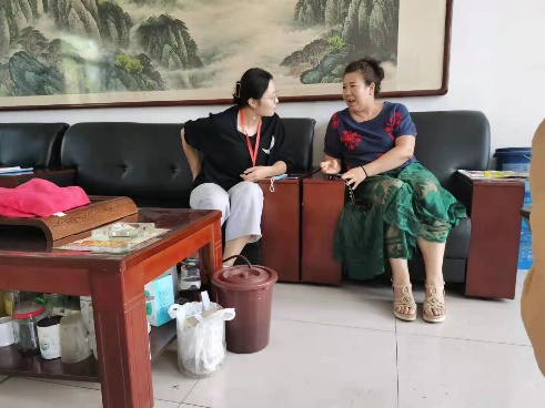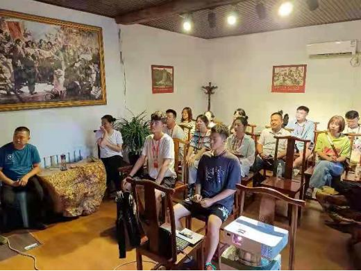 在2021年8月8日,培训的最后一天,魏碧慷及其团队与山西省红十字会副会长、太原市物业协会书记王书记、山西和悦社会工作服务中心主任王主任、北京理工大学创业辅导老师康老师、店子底村老书记等一行人共同前往店子底做培训总结报告。