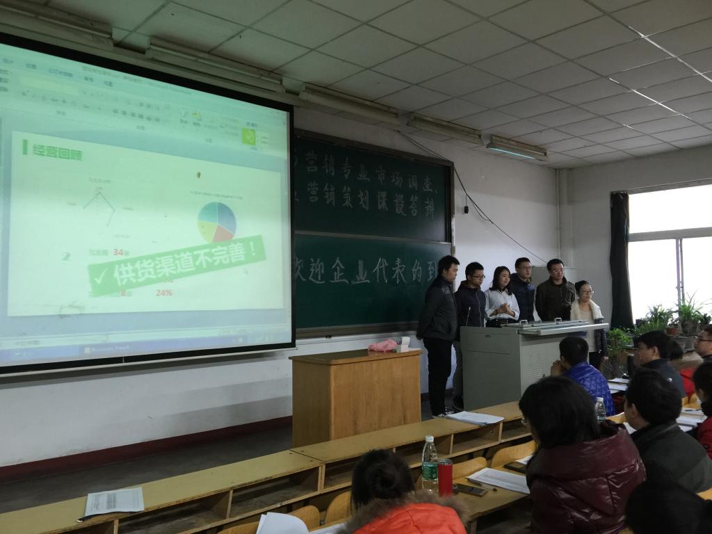 经济与管理学院市场营销专业老师为了提高学生的实践能力和创新能力,在《市场调查实训》和《市场营销策划》两门实践课程大胆尝试。课程设计题目全部由双合成集团、顺丰快递、娃哈哈公司、晋城银行四家企业针对实际问题来命题,每个命题有三到四个学生小组竞争,指导教师由营销专业四名教师和企业代表共同组成导师组进行指导。在最终的答辩环节,企业和营销专业教师组成答辩委员会进行全程评价和打分,每个企业对于参与本企业命题的所有学生根据评价等级颁发奖品。这种形式受到企业和学生的高度欢迎,