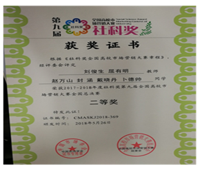 2018年“互联网+”大学生创新创业大赛市场营销专业学生获奖证书如下: