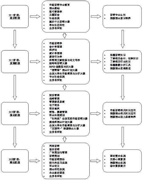 图1基于创新创业导向的市场营销专业人才培养四阶段模型