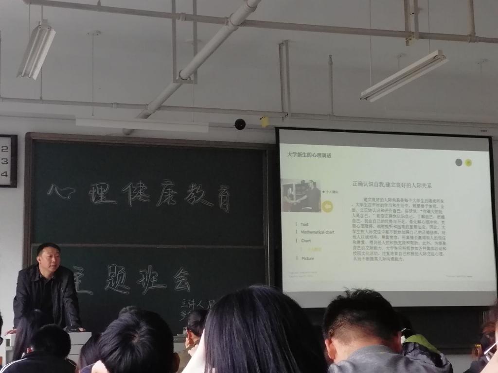 2017级新生经历过严格的军训后已经投入紧张的学习生活中,初入大学校园,学习和生活发生很大转变,心理调适对大一新生来说是一门必修的课程。顾部长用幽默的言语、生动的案例为同学们诠释如何迈好开学第一步,如何完成角色的转变,如何改变学习方法,如何正确认识自我,建立起良好的人际关系。此外,顾部长还为大家展示我院2017届校长奖章获得者宋清的答辩视频,通过榜样,鼓励同学们不断努力,实现个人的成长。最后,顾部长与同学们进行了互动,耐心解答了大家的提问。
