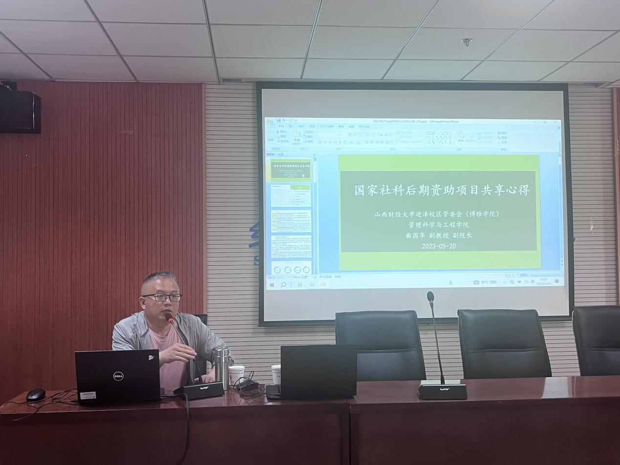 曲国华教授则重点介绍了国家社科后期资助项目的申报条件、申报材料准备、结项及出版情况等要点,并分享了自身的申报经验和心得体会。同时,讲座还安排了互动环节,听众们积极提问,曲国华教授也耐心解答,现场气氛热烈。