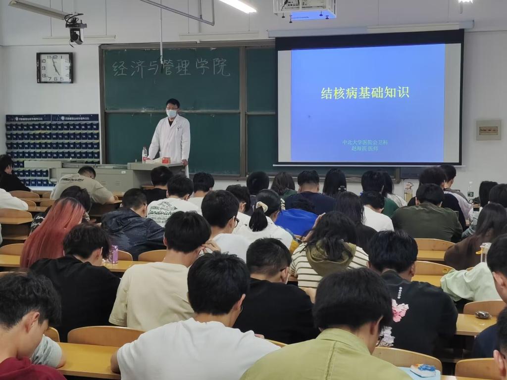 为提高学生对肺结核防治的认识,动员我院学生行动起来预防和控制肺结核,经济与管理学院邀请中北大学校医院公卫科赵海滨医师于5月30日下午16:40在15204H室开展了普及肺结核基础知识讲座,各班学生代表参加。