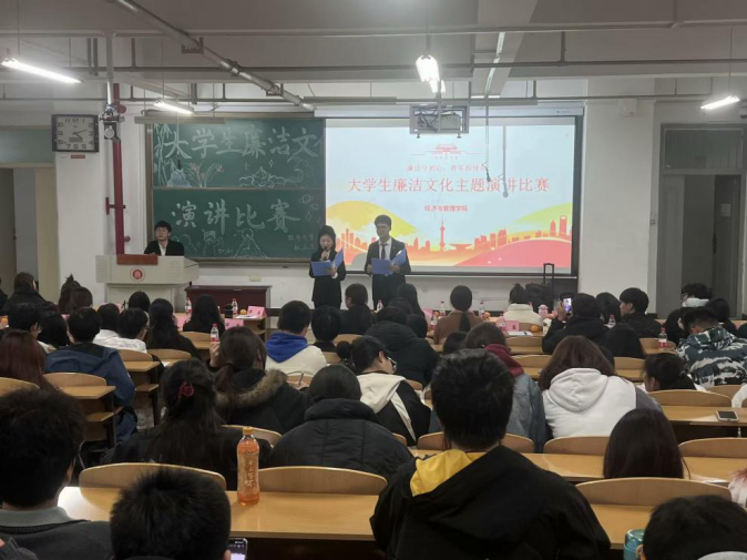 为深入学习贯彻习近平新时代中国特色社会主义思想,以鲜活的语言弘扬廉洁文化,经济与管理学院权益生活部于11月12日16时10分在15106H举办了第三届廉洁文化主题演讲比赛。我院共有23名学生参加此次比赛,邀请本院学生骨干评委20位,到场观众100名。