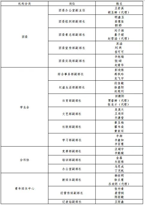 通过公开竞聘答辩,经学院学生工作组研究决定拟试用以下同学为经济与管理学院第六届团委学生会副部,公示时间:2024年9月2日—9月5日,如有异议,请于公示期间与买璐璐老师联系,电话:0351-3557122。