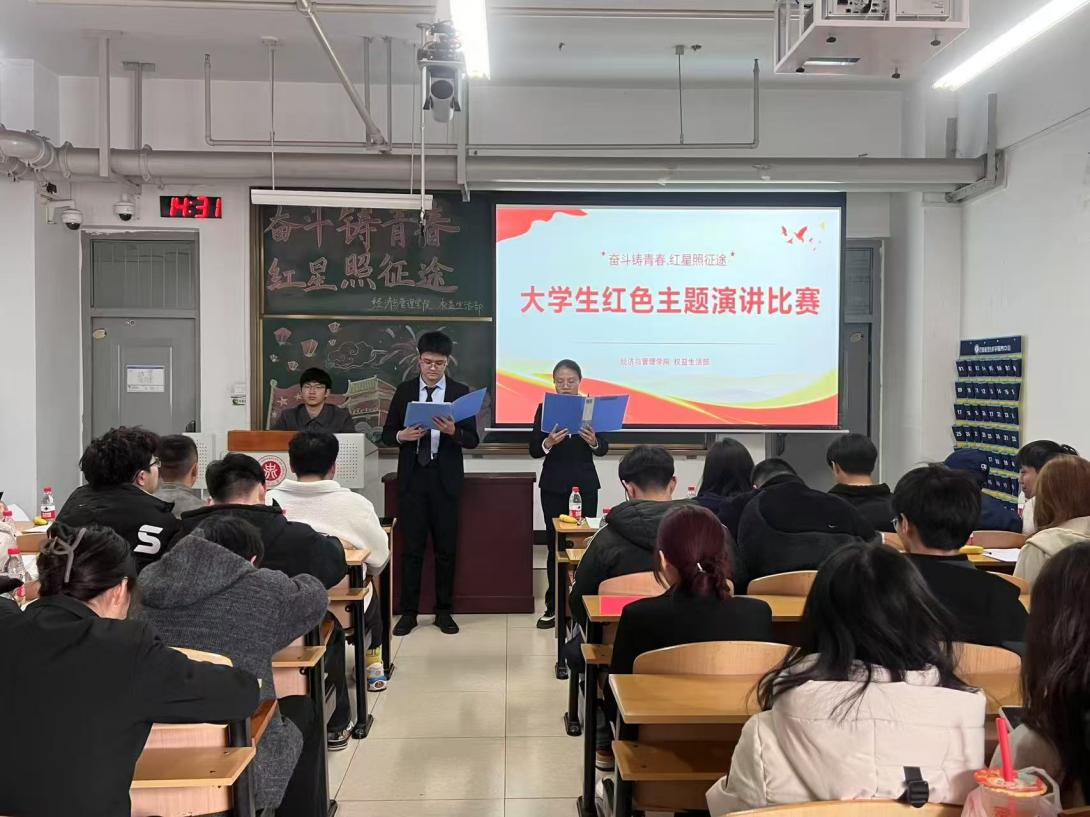 为弘扬革命精神,传承红色基因,激发青年学生的爱国热情与使命感,经济与管理学院权益生活部于3月9日14时30分在15103Z教室举办“奋斗铸青春 红星照征途”大学生红色主题演讲比赛,共有11名学生参赛,20位团学骨干担任评委。