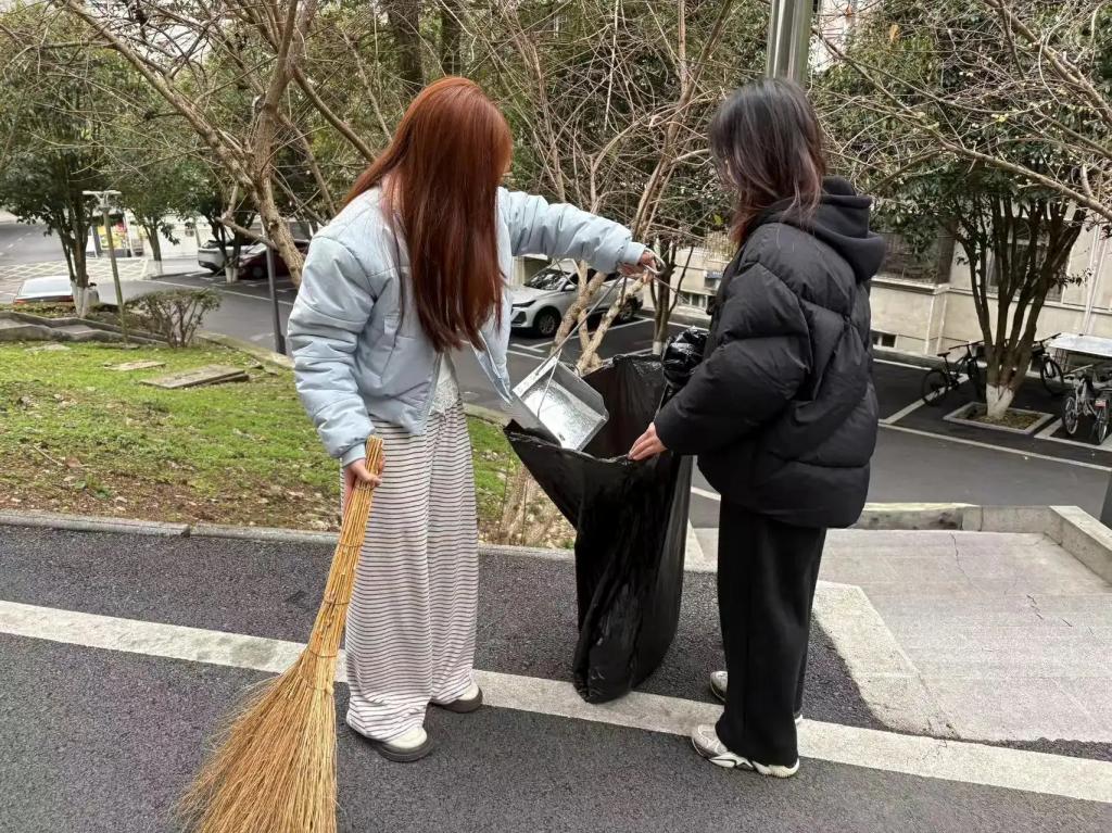活动期间,同学们积极参与,利用课余时间对校园公共区域进行清洁。他们手持清洁工具,认真清扫路面垃圾、擦拭宣传栏、清理绿化带杂物,确保不留卫生死角。同时,同学们积极向过往师生宣传环保知识,倡导共同维护校园环境,营造整洁舒适的学习生活氛围。