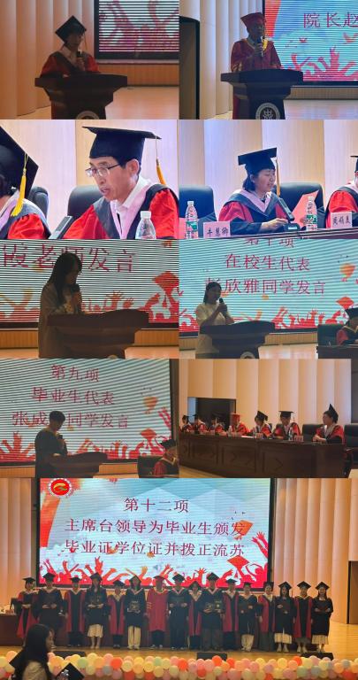学院党委书记杜苇发表了热情洋溢的致辞。她深情寄语全体毕业生,盛赞他们以青春之火熔铸四年韶光,与时代同频共振,亲历国家波澜壮阔的奋进史诗,见证学院日新月异的璀璨篇章。杜书记勉励学子们铭记“强国一代”的使命荣光,将“经世济民,管乾理坤”的院训精魂融入血脉,无论未来驰骋何方,皆当胸怀家国,肩扛重任,以志气、骨气、底气回应时代召唤,以不懈拼搏之姿书写无愧于青春的壮丽华章。她深情承诺,母校永远是学子们扬帆远航的坚强后盾与温暖港湾。