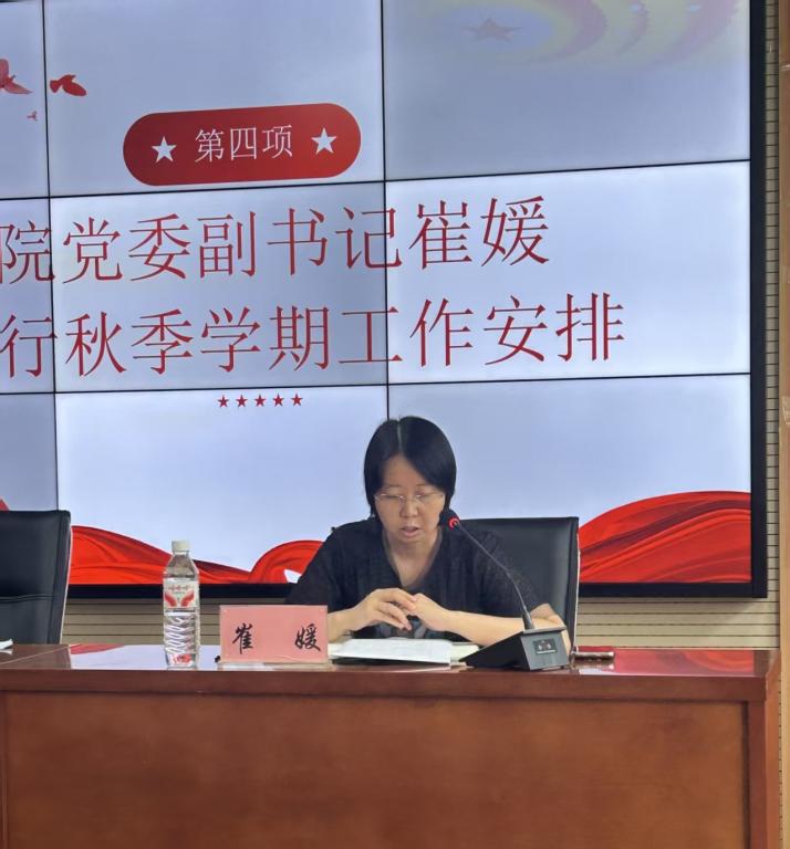 崔书记围绕加强思想政治引领、强化党建带团建的工作机制、完善创新实践育人体系三个方面就2025年秋季学期重点工作进行部署。提出要用习近平新时代中国特色社会主义思想凝心铸魂,在助力推动学校高质量发展中彰显新担当,体现新作为。