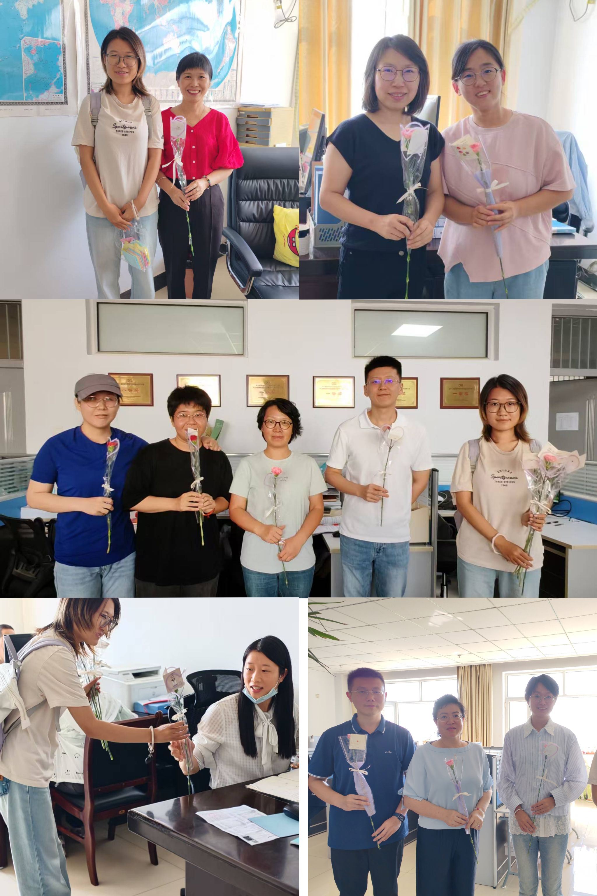 当天上午,学生代表们带着装满心意的花束与贺卡前往学院办公室。在办公室里,学生代表们为忙碌的老师们,送上康乃馨与贺卡。面对学生们的热情与真诚,老师们脸上露出欣慰的笑容,纷纷接过礼物,与学生亲切交流。