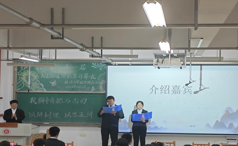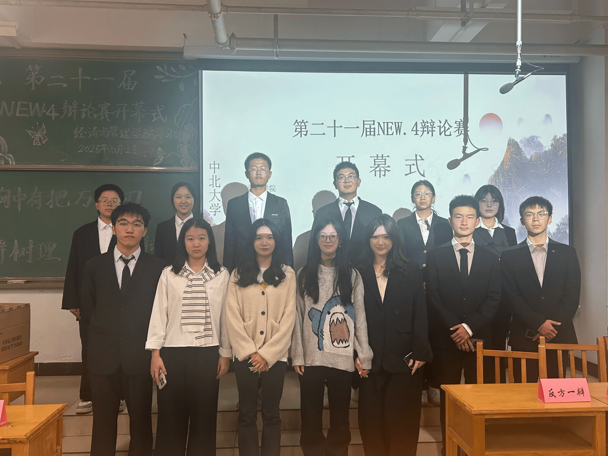 2025年10月12日晚上,中北大学经济与管理学院第二十一届NEW.4辩论赛在教学楼15206教室隆重开幕。“我胸中有把万股刃,以辩树理,以思正辩”。这场智慧与口才的巅峰对决吸引了众多学生前来观赛,现场座无虚席,气氛热烈,掌声不断。