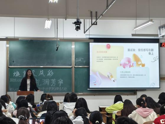 2025年10月24日晚19:00,经济与管理学院团委青志部联合学院礼仪队、中北大学X-SHOW模特社,在15208H教室开展“焕颜显风采,知礼润芳华”主题分享会。活动反响热烈,名额开放即秒空,参与人数超百。X-SHOW模特社社长、学院礼仪队李子薇担任主讲人,为同学们带来一场聚焦社交礼仪的实用分享。