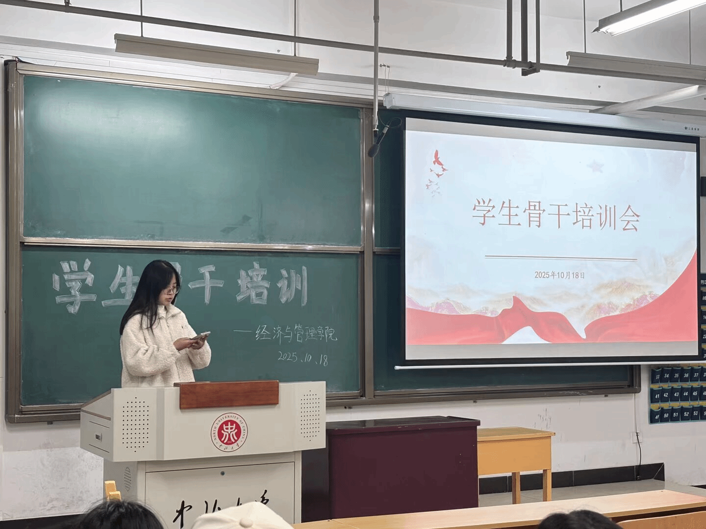 为进一步提升学生骨干综合能力,更好地服务同学,经济与管理学院于10月18日下午15时在15101教室成功举办学生骨干培训会。本次培训由学生会各部学生骨干主讲,25级全体学生骨干参与。培训会聚焦团务全流程工作,从智慧团建操作到多部门业务协同,为全院学生骨干构建了专业且实用的能力提升体系。