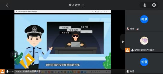 本次活动结合师生实际情况灵活开展:在校班级于教室集中观影,通过视频学习高校常见诈骗类型与防范技巧。22级及23级研究生班级以线上会议形式参与,同步完成学习。观影过程中,师生们围绕“刷单返利”“校园贷”等典型案例展开讨论,深入了解诈骗分子的话术套路,明确“未知链接不点击、陌生信息不透露”的反诈准则。