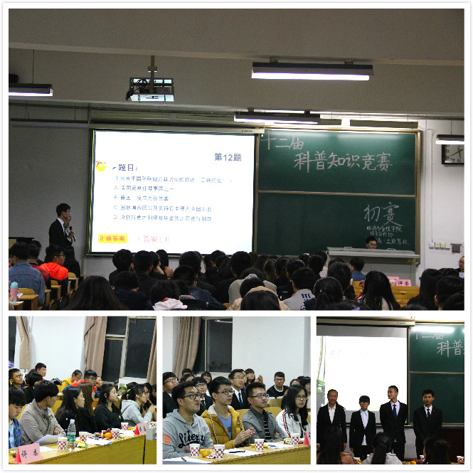 为了调动学生对科学技术的兴趣,发展同学们对科学的探索精神,在学习中了解现代科学的日新月异,并且锻炼自己的表达能力,由经济与管理学院团委学生会分科协举办的第十三届科普知识竞赛初赛于10月22日19时在12301、12302教室分两场进行。
