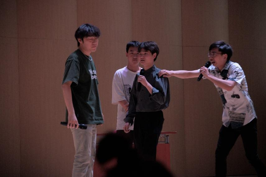 经过初赛的紧张角逐,大学生心理发展指导中心的老师们为进入决赛的我院参赛队伍提出了建议和指导。经过剧组全体成员和学院心理老师的总结认识,大家在决赛的前几天加大了排练强度。在拾光驿站活动室、柏林园随处可见大家辛苦的排练身影,在排练过程中,屈有明书记和李霄晗老师多次支持和鼓励拾光驿站的成员,李霄晗老师不辞辛劳指导剧组,正是院领导和老师对此次活动的重视,拾光驿站才有信心,有力量更加努力地排练。经过多次的配合和紧密的衔接,整个剧组的表演效果更上一层楼。