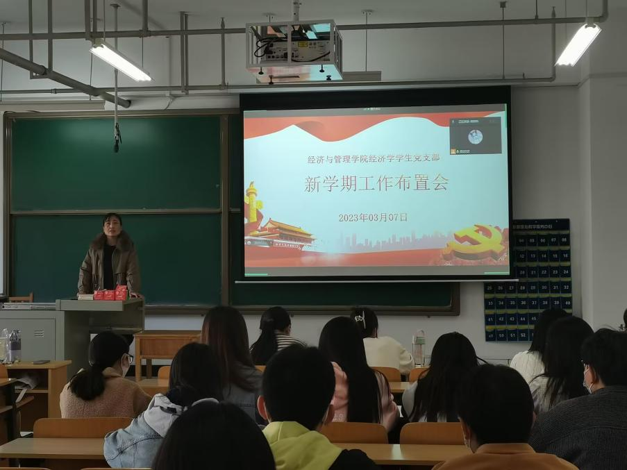 新学期新气象,启航新征程。 2023年3月7日,经济学学生党支部召开支部大会,进行了新学期支部工作部署,本次会议由支部书记李爱霞同志主持,经济学学生党支部全体党员参加。
