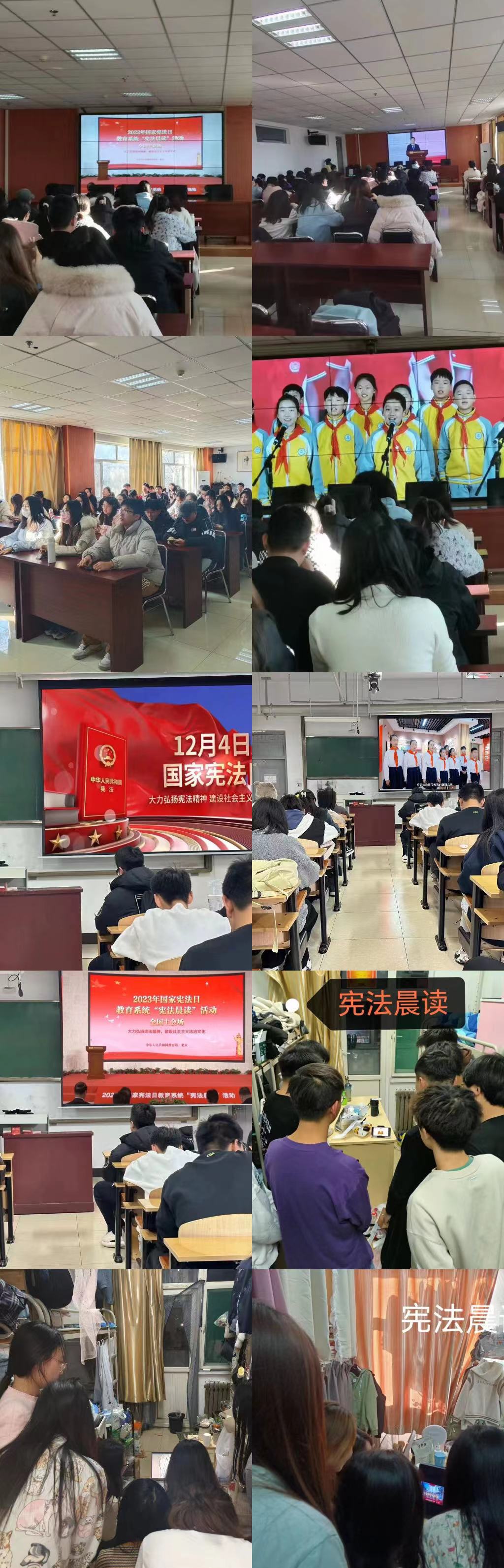 为深入学习贯彻党的二十大精神,大力弘扬宪法精神,建设社会主义法治文化,引导我院学生树立宪法意识,2023年12月4日上午,经济与管理学院全体学生参与教育系统“宪法晨读”活动直播,其中我院全体学生党员于逸夫南楼301集中观看,其余学生以班级、宿舍为单位参与活动。