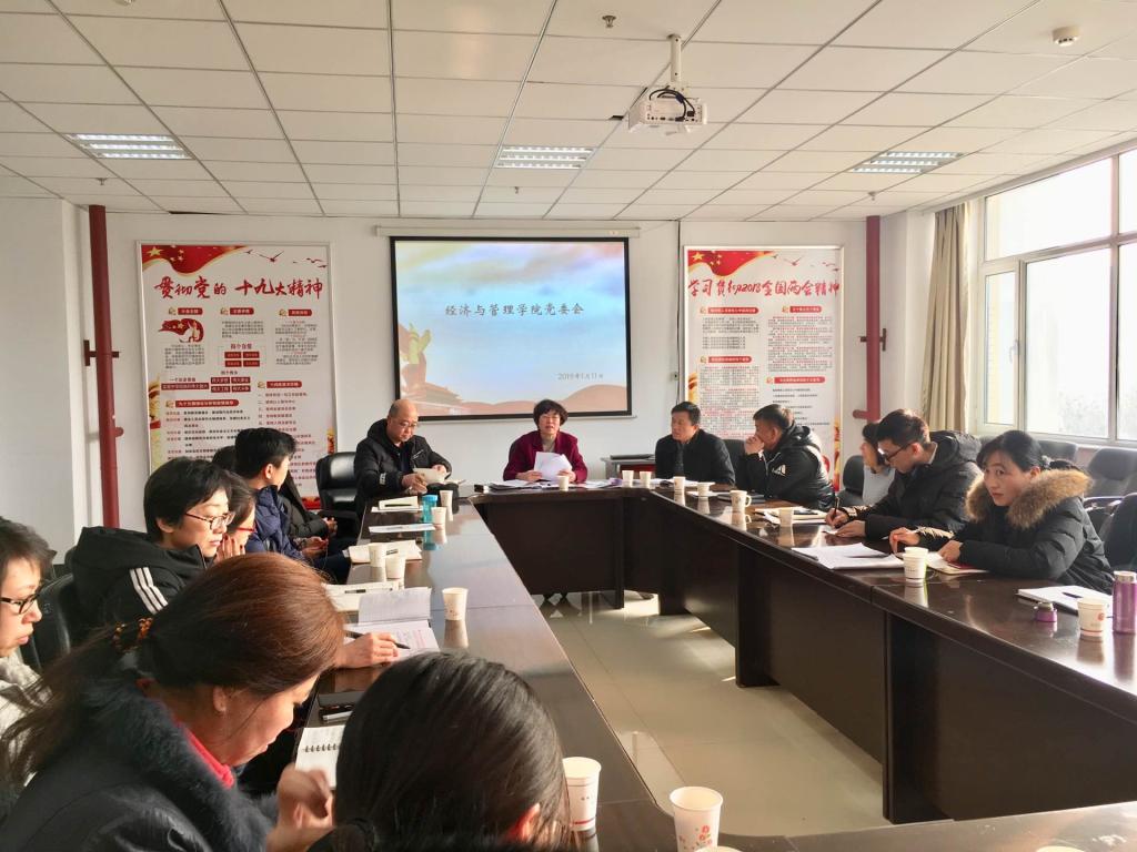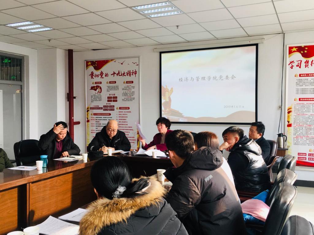 2019年1月11日上午9:00,经济与管理学院在逸夫楼南楼308党员之家召开了党委会。会议由院党委书记王琳主持,我院党委委员、各党支部书记、党建组织员及师生党员代表参加了会议。