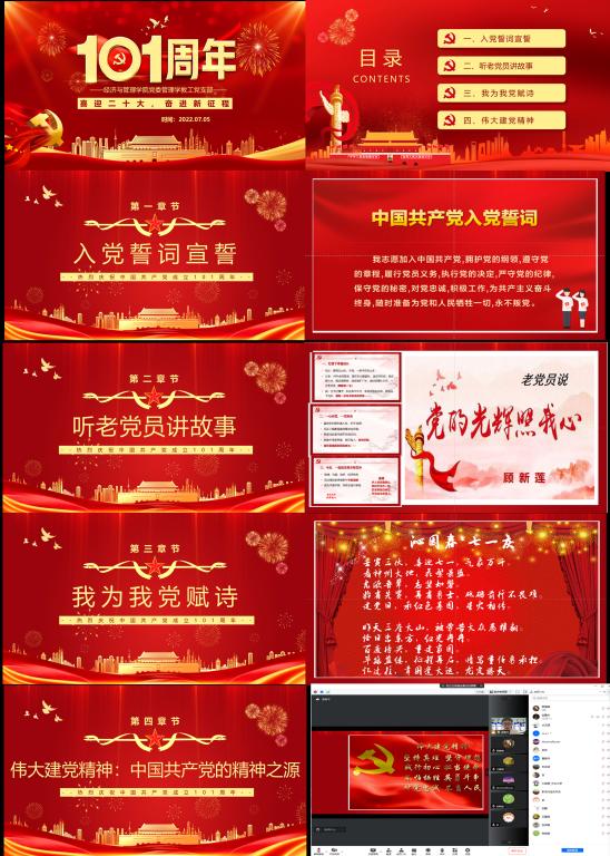 2022年7月5日下午14:30,管理学教工党支部以线上形式开展庆祝中国共产党成立101周年系列活动,主题为“喜迎二十大 奋进新征程”。支部联系院领导赵公民同志、教学副院长彭佑元同志以普通党员身份参加并做指导,支部书记武勇杰主持了本次活动,支部全体党员参加。