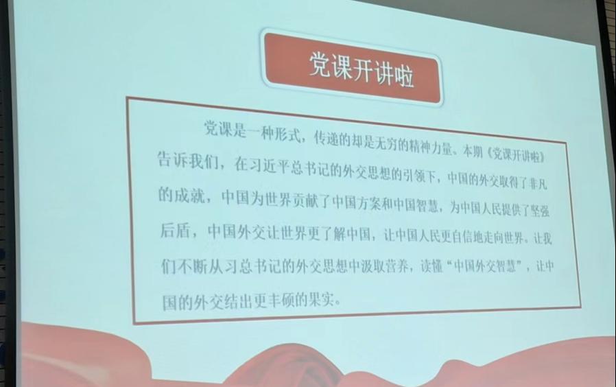 活动以外交知识问答的形式让党员们深刻认识到中国外交政策的宗旨是维护世界和平、促进共同发展。中国坚持独立自主的和平外交政策,始终不渝走和平发展道路,始终不渝奉行互利共赢的开放战略,愿意在和平共处五项原则的基础上同所有国家建立和发展友好合作关系,推动建设持久和平、共同繁荣的和谐世界。另外,通过观看外交官发言视频,党员们也深入理解了习近平外交思想是习近平新时代中国特色社会主义思想的重要组成部分,是马克思主义基本原理同中国特色大国外交实践相结合的重大理论成果,是以习近平同志为核心的党中央治国理政思想在外交领域的集中体现,是新时代我国对外工作的根本遵循和行动指南。