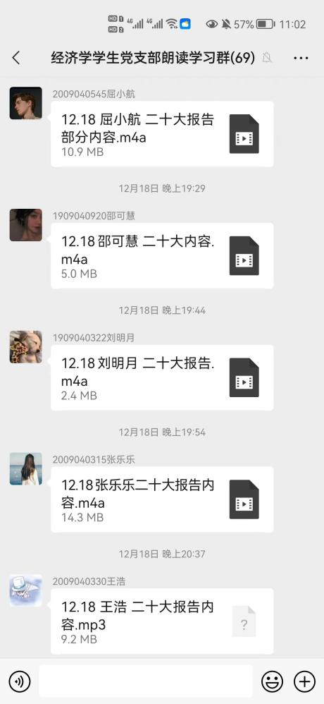 在此次朗读活动中,学生们每天通过发音频的方式完成朗读党的二十大报告原文,并分别从不同角度解读党的二十大精神加深对党的二十大的理解,学生们每天坚持朗读10分钟,力求在朗读中悟思想、强信念。