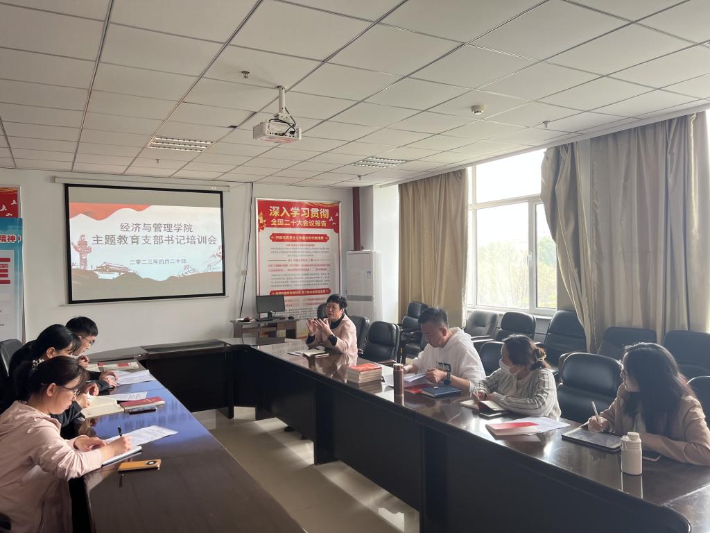 4月20日上午10点,经济与管理学院在逸夫楼南楼308会议室召开学习贯彻习近平新时代中国特色社会主义思想主题教育支部书记培训会,学院各支部书记参加了会议,会议由院党委书记王琳主持。