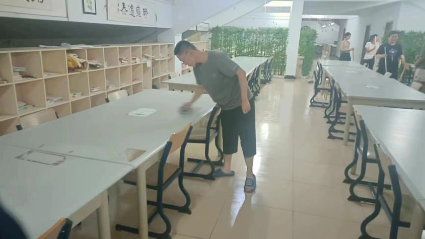 此次志愿活动将学生党员们分为八组,其中每组四名同学,分别在各组组长的带领下对书院自习室、阅览室、活动室等区域展开清扫。清扫过程中,党员志愿者们按照分工和协作要求,分组分片包干,细致擦拭桌椅,认真打扫地面灰尘,耐心整理桌面杂物,大家分工明确、协同作战,确保清洁区域无遗漏、无杂物。经过大家的努力,书院变得焕然一新,充分体现了“哪里需要我们,哪里就有我们身影”的党员精神。