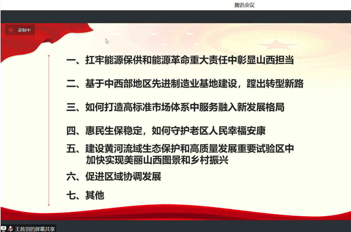 2023年7月3日上午9点,经济与管理学院研究生党支部开展“助力山西经济高质量发展”线上交流会,活动由研究生党支部书记屈有明主持,全体研究生党员参加。