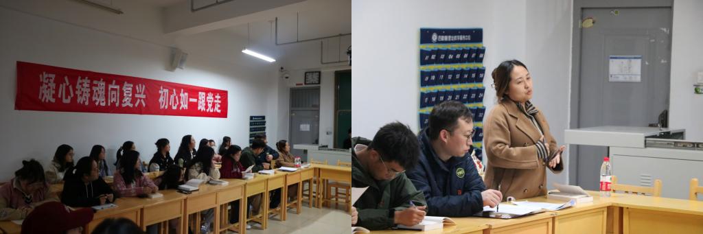 此次活动首先文楠老师进行发言,随后,张江鑫李可欣两位领学员诵读文章。在讨论交流环节当中,两支部新时代中国特色社会主义思想实现了马克思主义中国化时代化新的飞跃”为题进行讨论各积极分子进行交流发言。活动最后,屈增老师进行了总结发言,表示这次诵读活动举办圆满成功,并且希望各党支部间继续加强党风党建学习与讨论,深度学习习近平新时代中国特色社会主义思想。