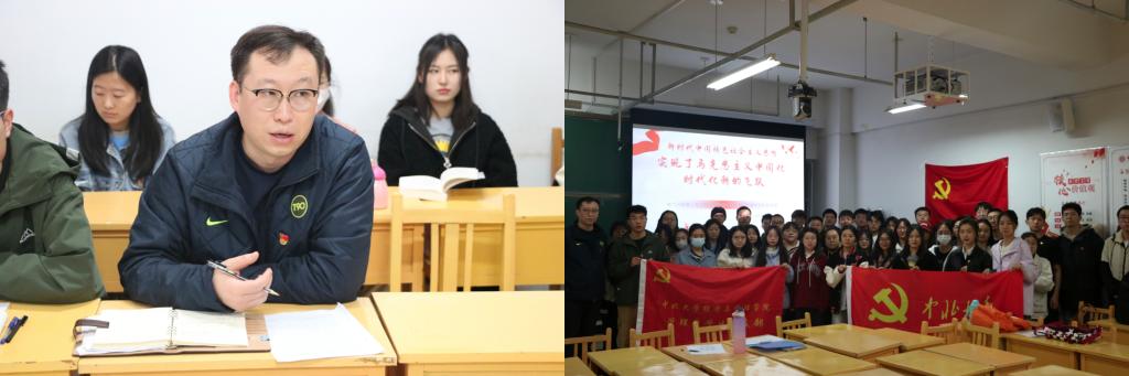 2023年4月23下午4:00,经济与管理学院管理学学生党支部和电气与控制工程学院本科生第一党支部15203教室开展以“凝心铸魂向复兴,初心如一跟党走”为题的诵读活动。管理学学生党支部书记文楠老师和电气与控制工程学院本科生第一党支部书记屈增老师以及各位入党积极分子参与诵读活动,并进行了讨论交流。