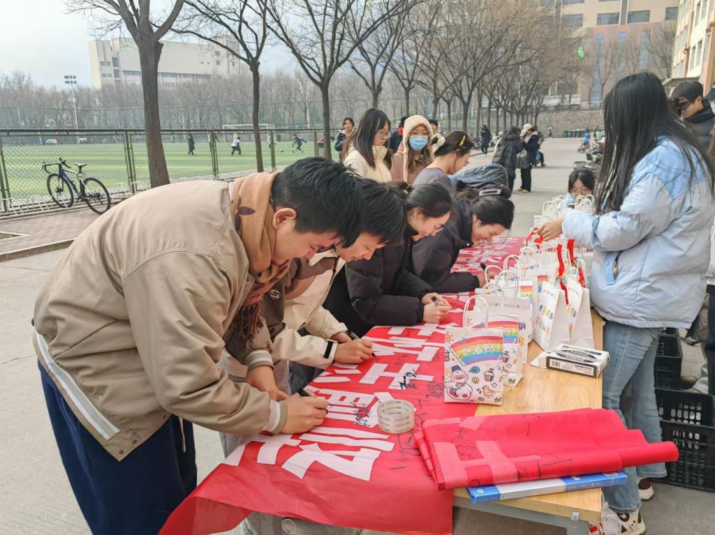 活动当天,本科生及研究生党员代表学院将礼品分发到了正在紧张备考的考研学子手中。考研学子在横幅上签下自己的名字,表达考研的信心和决心。本次活动传递了一份精神上的鼓励,在送上礼品的同时,党支部成员还与考研学子进行了交流互动,给予他们贴心的关怀与加油鼓劲,让考研学子们感受到真诚的支持与敬意。