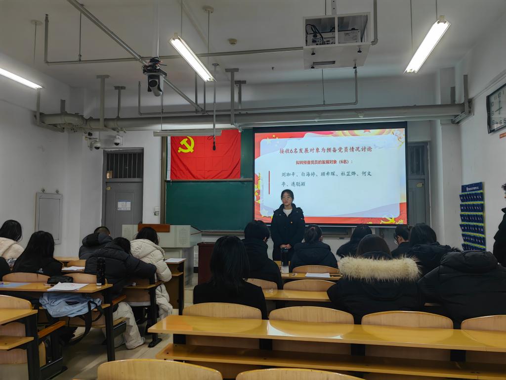 2024年12月25日星期三上午8:30,中北大学经济与管理学院管理学学生第二党支部在15号楼103教室进行了接收预备党员以及预备党员转正的支部大会。大会讨论了刘珈辛等6位同志的入党事宜以及张成兵等5位同志的转正事宜,支部书记叶甜甜以及支部全体党员参加。
