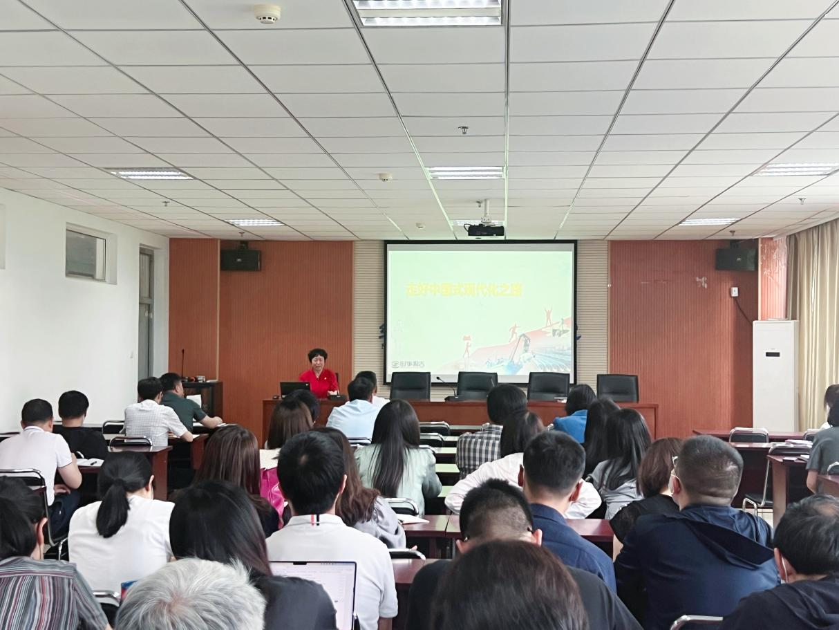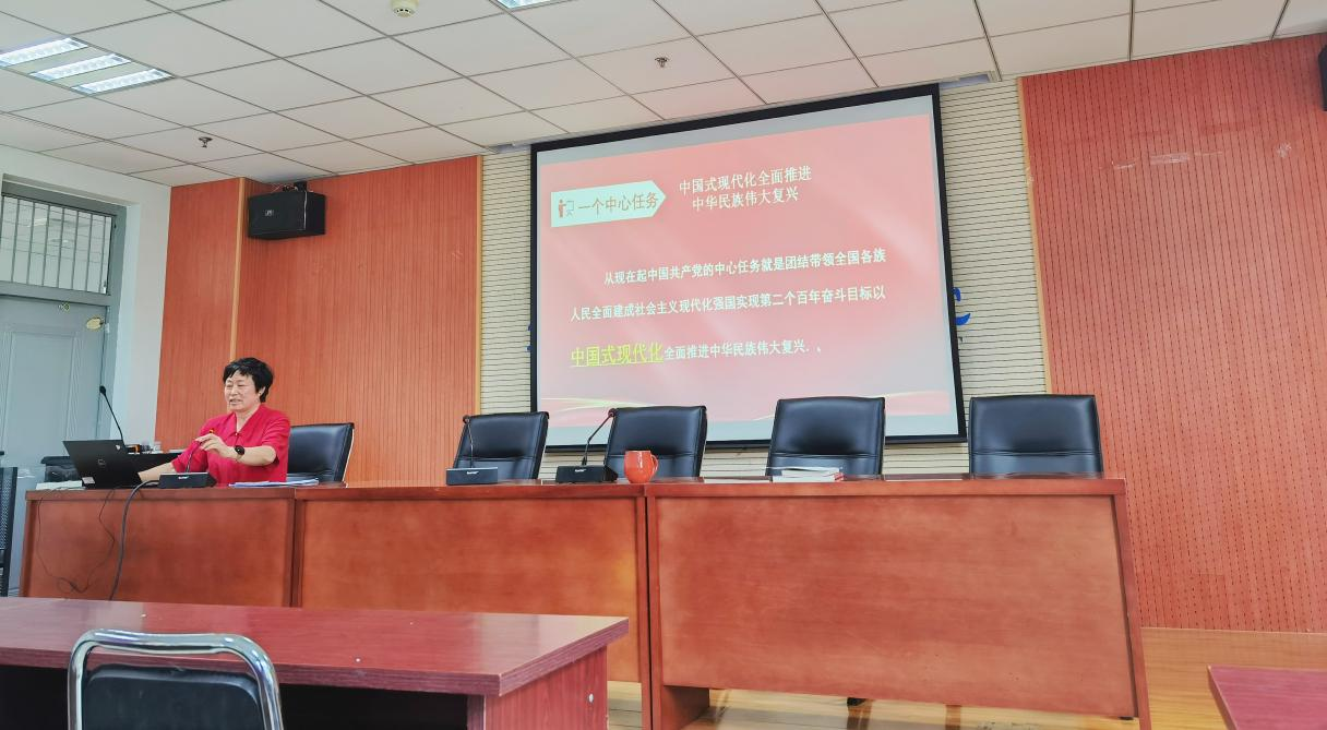 党的二十大报告提出,从现在起,中国共产党的中心任务就是团结带领全国各族人民全面建成社会主义现代化强国、实现第二个百年奋斗目标,以中国式现代化全面推进中华民族伟大复兴。王琳书记围绕这一中心任务展开讲述,分别从接续奋斗,追求千年梦想;立足国情,开辟全新道路;凝心聚力,推进复兴伟业三个方面与大家进行了分享。她引用习近平总书记在省部级主要领导干部“学习习近平总书记重要讲话精神,迎接党的二十大”专题研讨班上的重要讲话:“世界上既不存在定于一尊的现代化模式,也不存在放之四海而皆准的现代化标准。我们推进的现代化,是中国共产党领导的社会主义现代化,必须坚持以中国式现代化推进中华民族伟大复兴”对宣讲内容进行深入阐释,我们的中国式现代化之路只要找准正确方向、驰而不息,走好自己的路,就一定能够实现。全国人民在党的旗帜下团结成“一块坚硬的钢铁”,心往一处想、劲往一处使,矢志不渝沿着中国式现代化这条光明大道走下去,必将续写激荡人心的东方传奇,赢得令人惊叹的大国荣光。