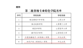 2023年5月26日山西省教育厅文件晋教高【2023】3号文件认定中北大学知识产权(标准化)学院为山西省第二批省级专业特色学院。学院以该平台获批为契机,紧跟国家产业战略发展方向,遵循知识产权(标准化)工作人才培养规律,着重建设知识产权(标准化)专项技术人才培训基地,为省内快速高效培养政府、企业、团体各级知识产权(标准化)工作组织急需的知识产权(标准化)人才。
